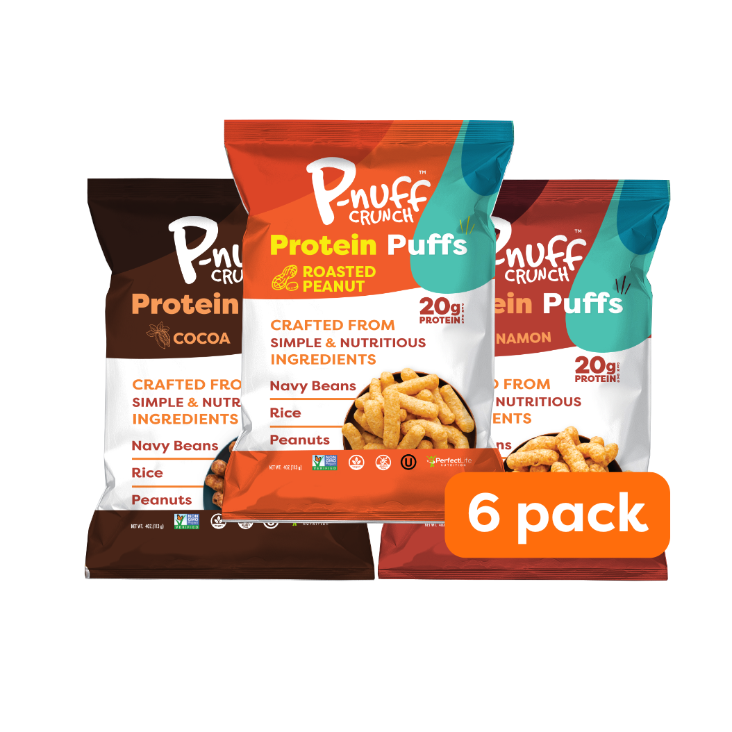 - Includes 6 P-nuff Crunch bags, 3 flavors - 2 bags of each flavor.